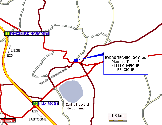 HYDRO-TECHNOLOGY s.a. is situated 20 km south of LIEGE in Belgium. It is very easy to meet by the highway E25 Liège – Bastogne (outlet 45 "Sprimont-Banneux-Spa"). Our office is nearly 5 km away.